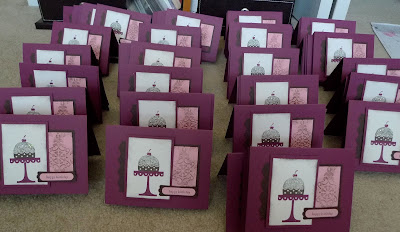 I signed up for a workshop wow swap on splitcoaststampers.com. I used a frosting technique on the cake and I hope everyone loves the cards. They were more work than I had initially planned.