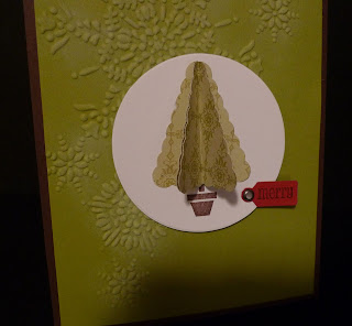 5. Stamp a tree base in Chocolate Chip ink on the Whisper White circle.