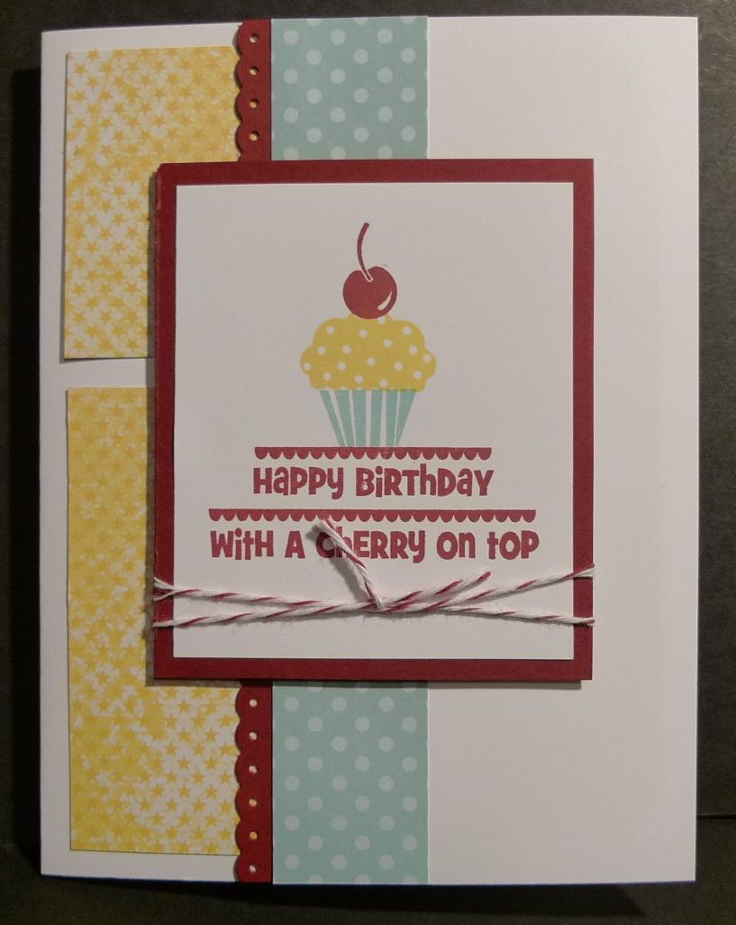 It uses the A Cherry on Top hostess stamp set # 125971. I make a lot of birthday cards and this is one of my favorite sets!!!!