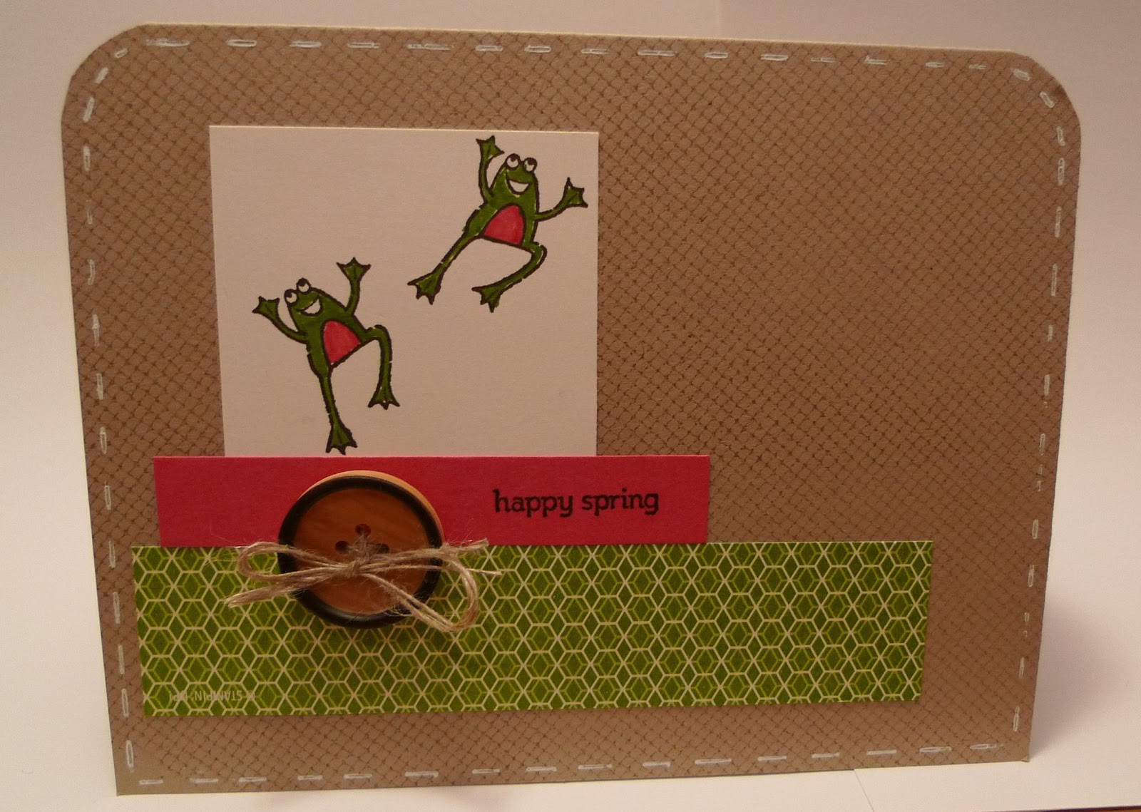 The snow in my front yard is finally melting. Yeah!!!  I made this frog card to celebrate the occasion.