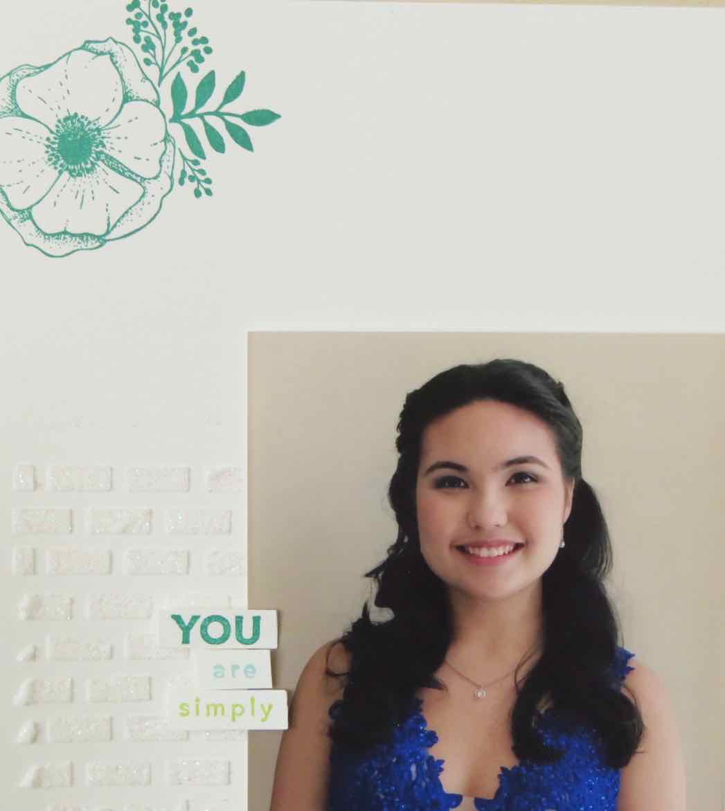 I used the stamp and thinlits in this scrapbook page of my daughter. I can’t believe she’s all grown up!