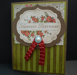 Accessories: Stripes Textured Impressions Embossing Folder, Labels Collection Framelits Die, Riding Hood Red 3/8″ Pleated Satin Ribbon, 1/2″ Circle Punch, Large Basic Pearl