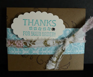 I tore a strip of matching Beau Chateau Fabric and tied it around the treat.