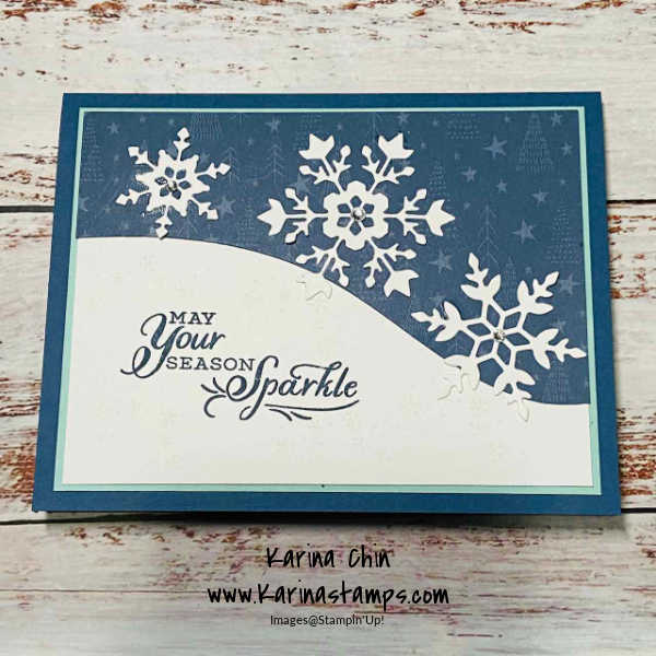I’m sharing a beautiful card you can send out over the holidays. The stamp set is called Snowflake Wishes. The set comes with 17 stamps and has coordinating So Many Snowflake Dies. The Designer Series Paper is from the Whimsy & Wonder Specialty Paper Pack. The colors are so pretty. The snow was made with a retired die but can be cut by hand.