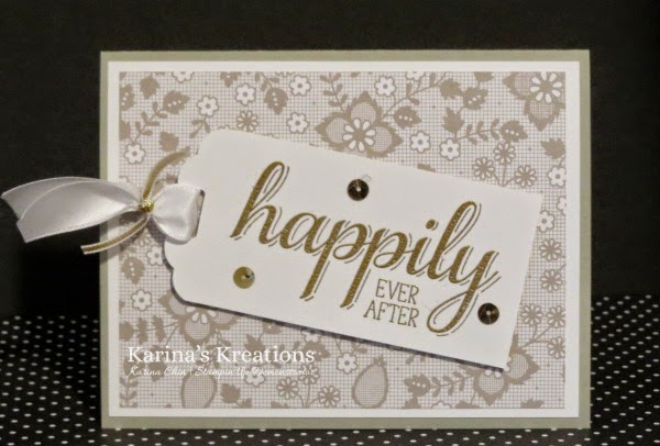 This is a cute wedding card I made with the Big News Stamp set, Something Borrowed Designer Series Paper and the Scalloped Tag Topper Punch.