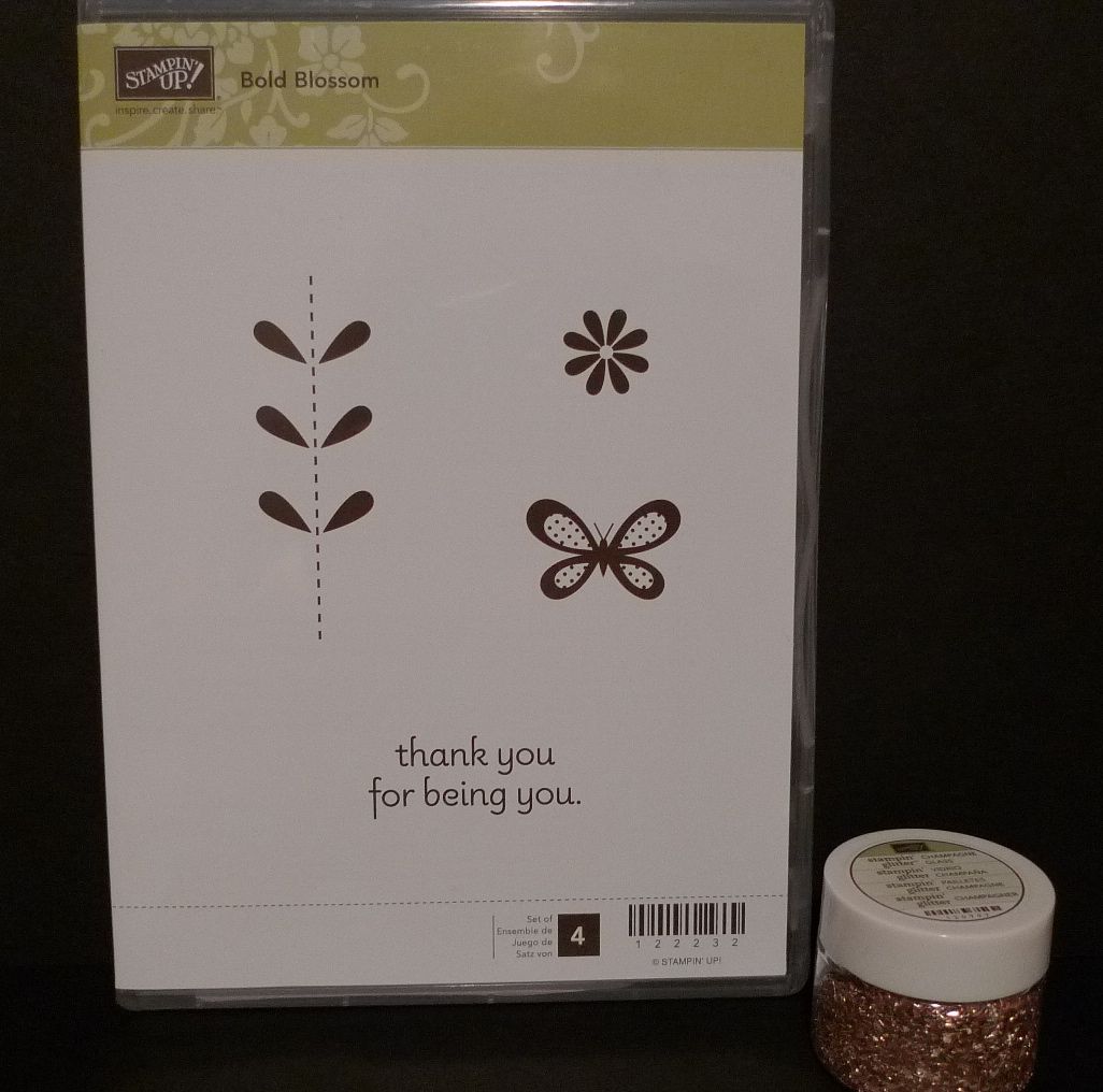 The winner will receive the new Bold Blossoms stamp set and Champagne Glass Stampin’ Glitter.