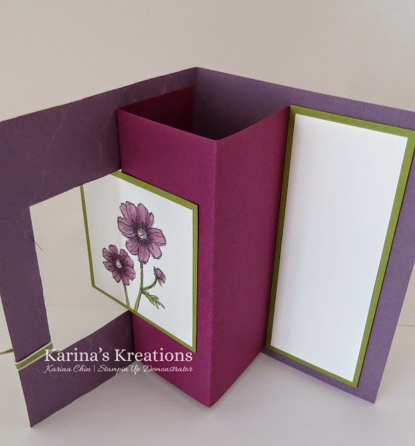 Close the card and attach the Old Olive square. Only place adhesive and half of