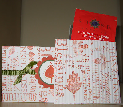 This is a quick treat holder I made for some friends. I filled mine with Tea but a gift card would also work. Seal a small open-end envelope. I decorated the envelope with the Bright Blessings Jumbo Wheel and Dusty Durango ink. Cut off 3″‘ from one end. Crimp the bottom part (3-3/4″ end)of the envelope with the crimper tool. Slide it into the top portion of the envelope.