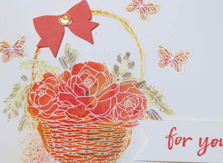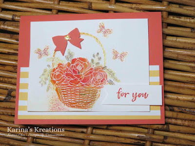 I’m getting ready for my Brusho card class on Thursday and decided to make a cute card using the Blossoming Baskets stamp set.