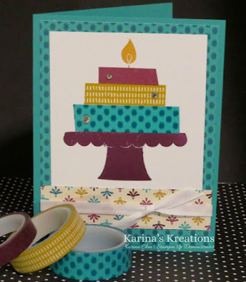 I stamped the cake tray with Blackberry Bliss ink and made the cake layers with Bohemian Designer Washi Tape.
