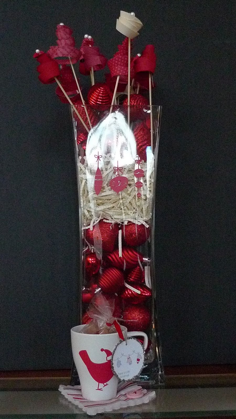 This is what I did with mine. The vase and cup are from IKEA. The spirals at the top of the vase are made with the Table Setting Bigz XL die. It’s on sale for $34.77 until Nov 30. I want to thank Cindy & Janet for helping me make the spirals. This made a great center piece for the trade show I was in.