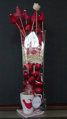 I held a decor elements class today and Tina made this super cute picture frame. The frame is from Ikea and she used the Candy Cane Christmas Decor elements to add interest to the glass. They are only $18.85 for a set of 10 images. The order number is 120912 for Real Red.