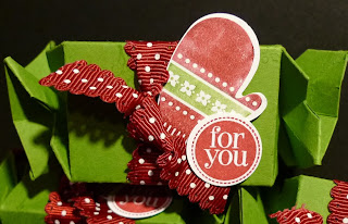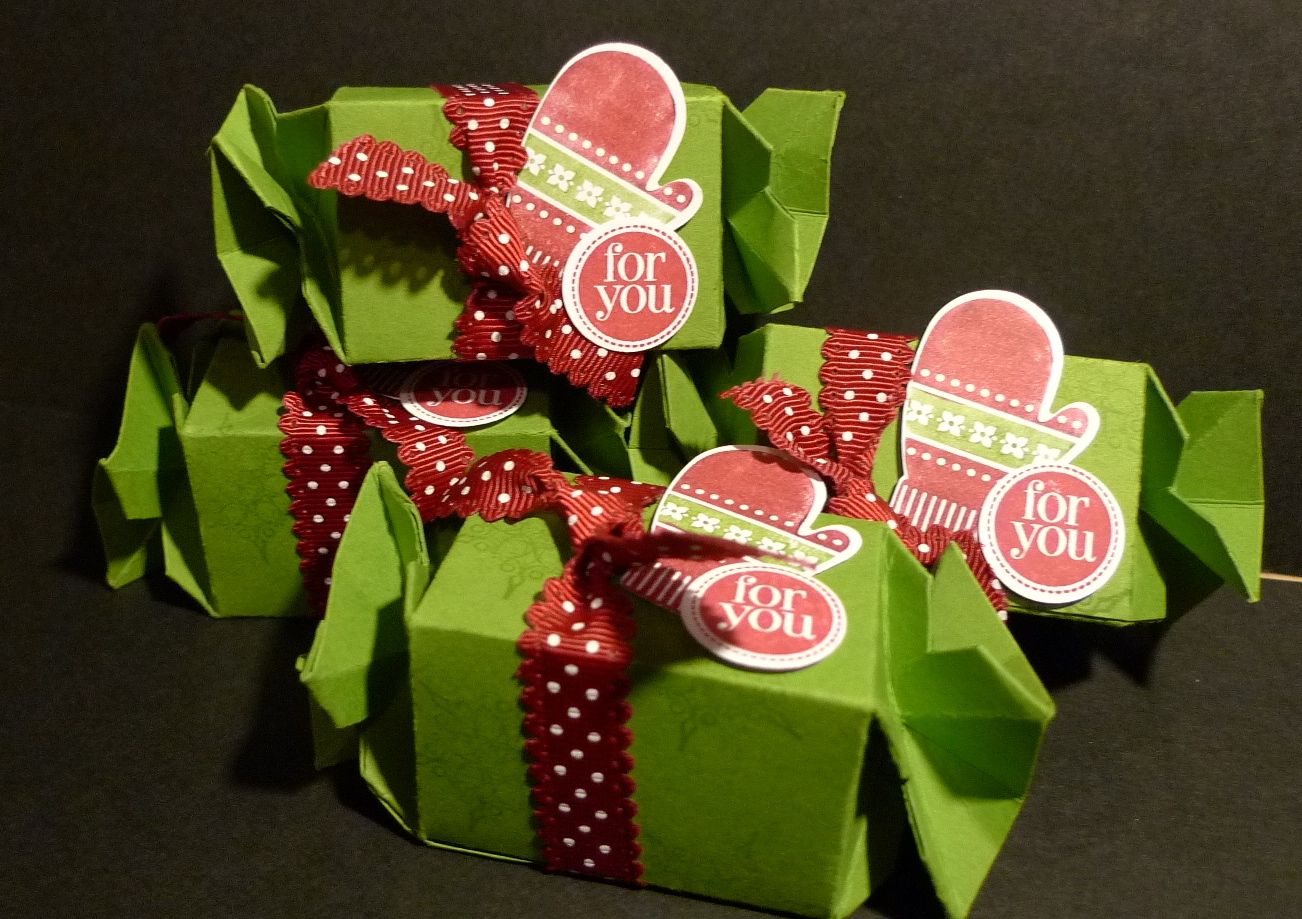 I used the Candy Wrapper Bigz XL die # 115965 and the Make a Mitten stamp set #127943 and matching punch #127824.