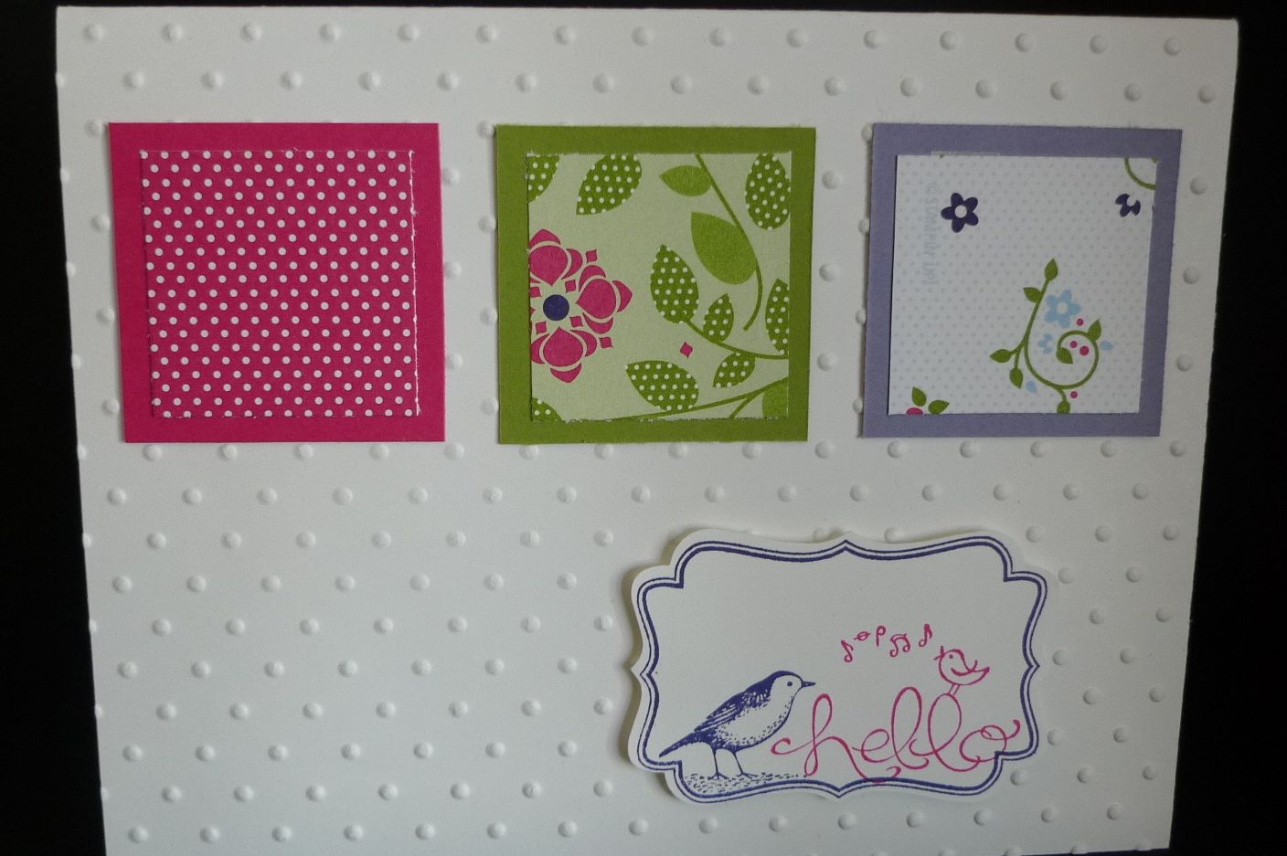 The first card uses the Perfect Polka Dots Textured Impressions Embossing Folders, the Four Frames stamp set and the Decorative Label Punch. Very Cute!