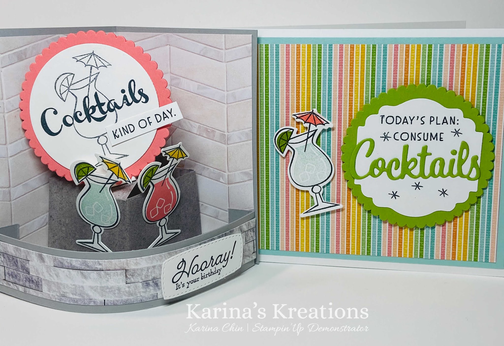We made two cocktails and four cards. This was the Pink Margarita cocktail and two of the cards.