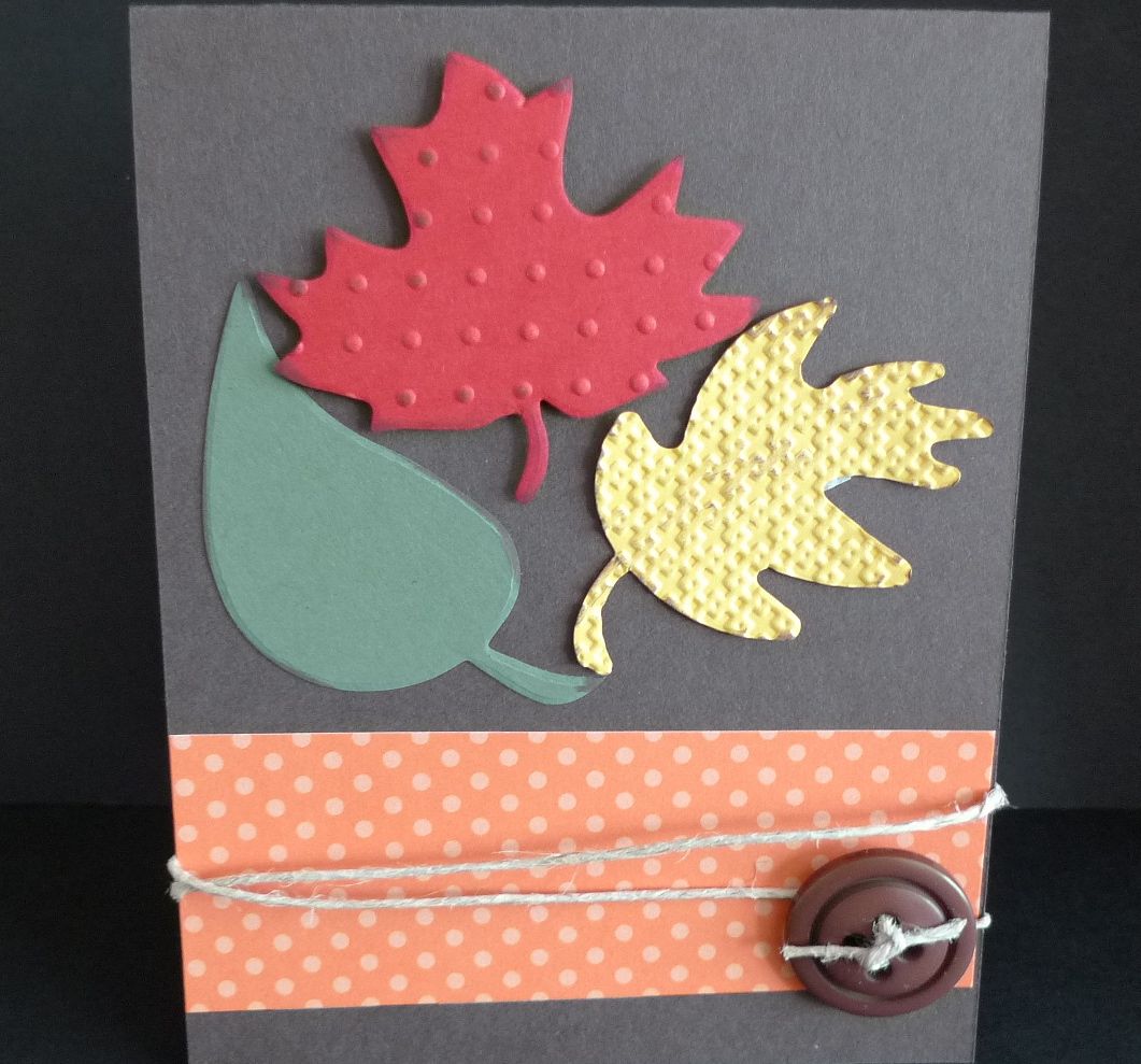 The first card was made by Kathy using the Leaves # 2 Original Die and the Big Shot Die Cut Machine. This is a link to Kathy’s blog with all the particulars. http://redeyecrafts.blogspot.com/