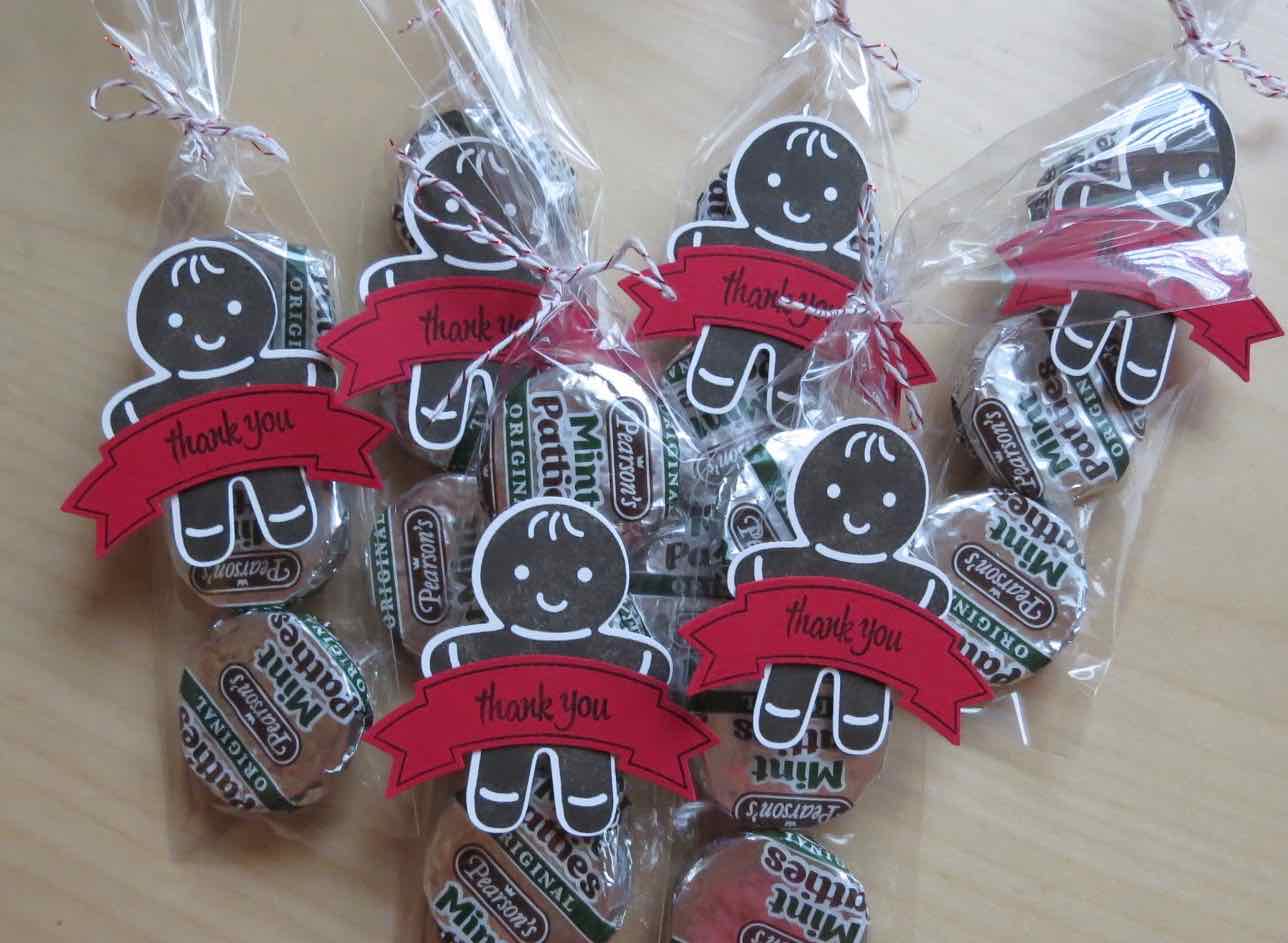 I used the 2×8″ cello Bags #141703, Cookie Cutter Christmas Stamp Set $142043, Cookie Cutter Builder Punch #140396, Thoughtful Banners Bundle #142330 and Candy Cane Lane Baker’s Twine #141983.