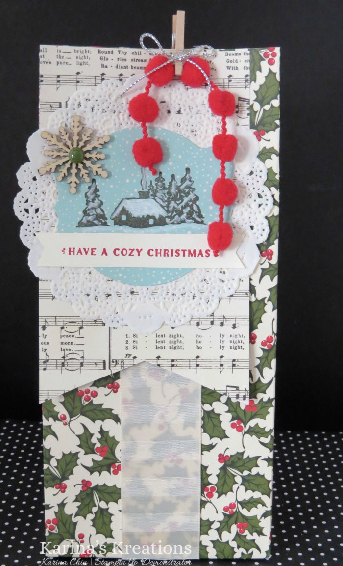 I cased this super cute bag for one of our displays. It’s from pg 8 of the mini catalog and is made with the Home for Christmas Product Suite. I colored the roof of the house with the Chalk marker.