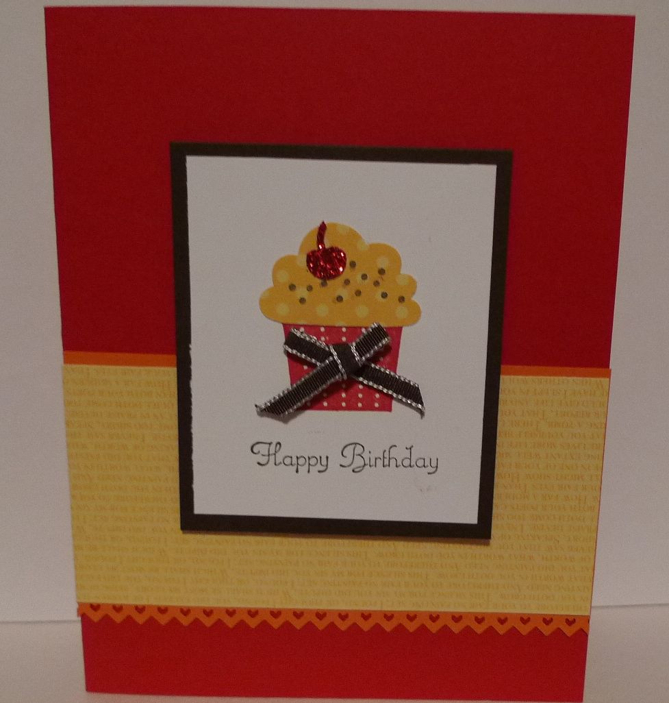 I used Stampin’Up’s new Red glimmer paper for the cherry. I just punched it out with the new Build a Cupcake punch.