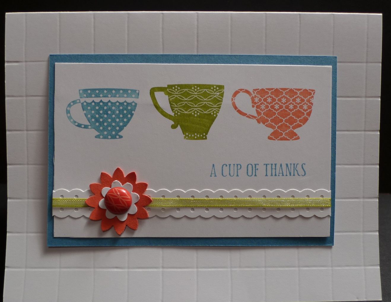 The card was designed by Donna Wizniuk and uses the new Tea Shoppe stamp set in the Occasions Mini catalo. This set has really cute images.