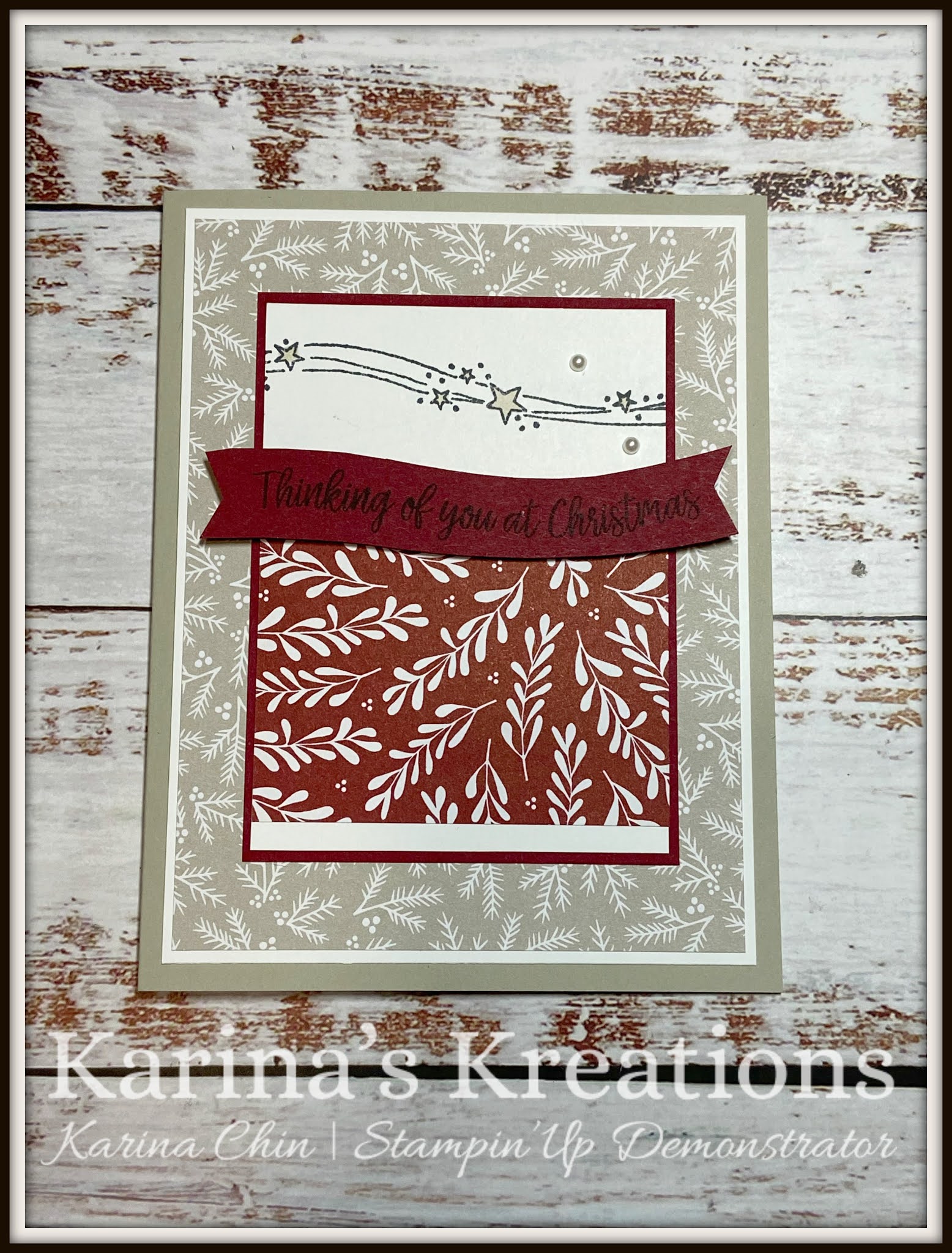 Isn’t this card pretty? It’s made with the brand new Curvy Christmas Stamp and Classic Christmas Designer Series Paper. These products will be available on Nov 3rd.