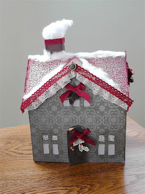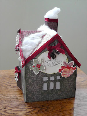 Isn’t this great? I had a home decor class and Sue made this beautiful Victorian house using Deck the Halls Designer Series paper, Bells & Boughs stamp set and the Decor Accents Design-a-house.I love all the detail she added to it.