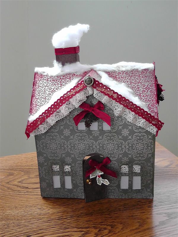 Isn’t this great? I had a home decor class and Sue made this beautiful Victorian house using Deck the Halls Designer Series paper, Bells & Boughs stamp set and the Decor Accents Design-a-house.I love all the detail she added to it.