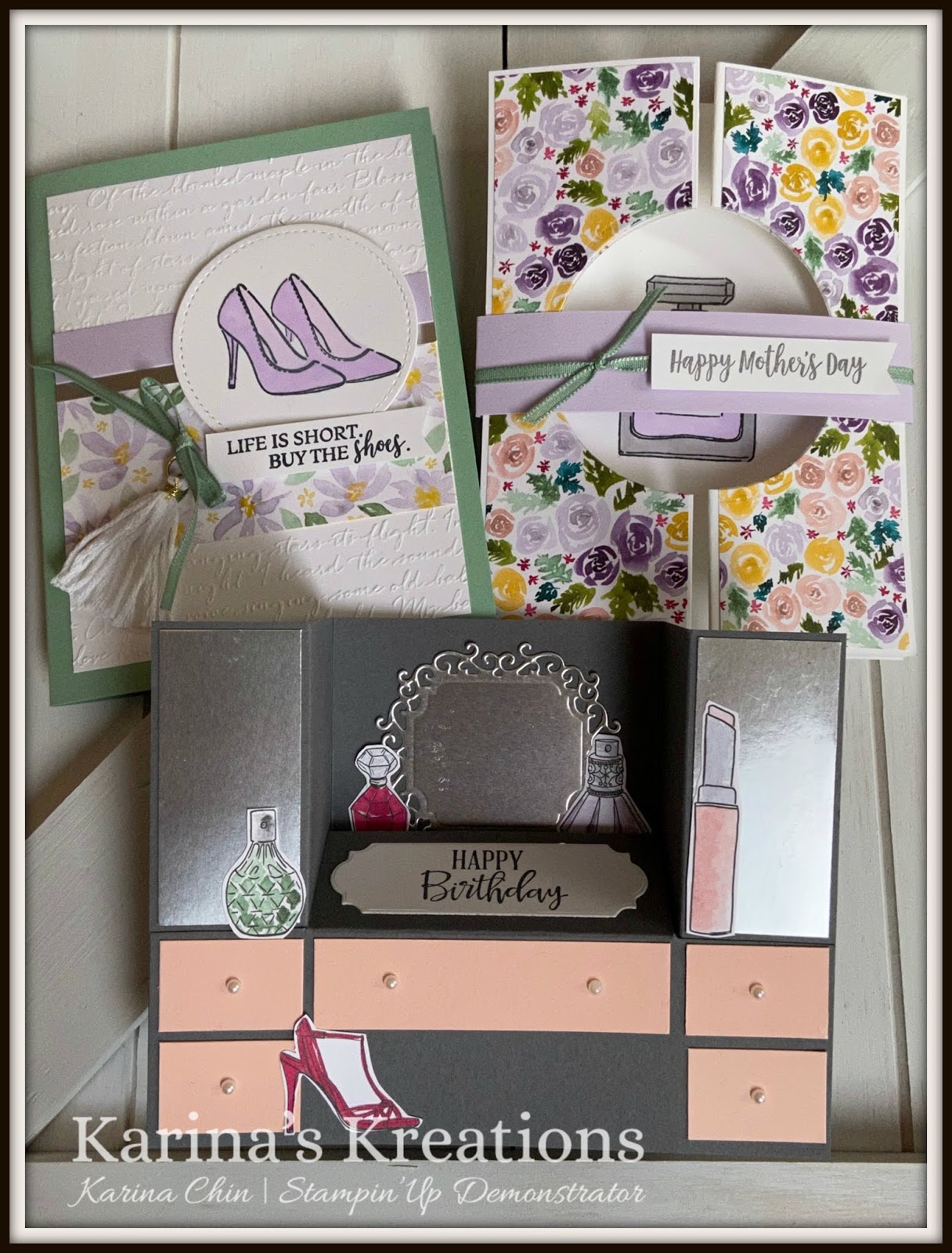 These are the cards this month featuring the Dressed to Impress stamp set.