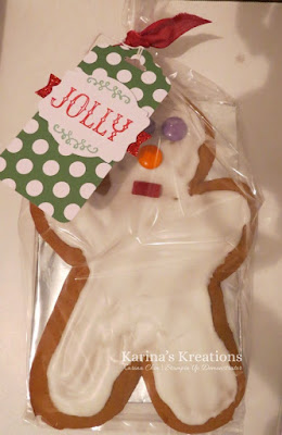 I placed my cookies in a Gusseted Cellophane Bag #133770 and tied it with a retired Stampin’Up ribbon.