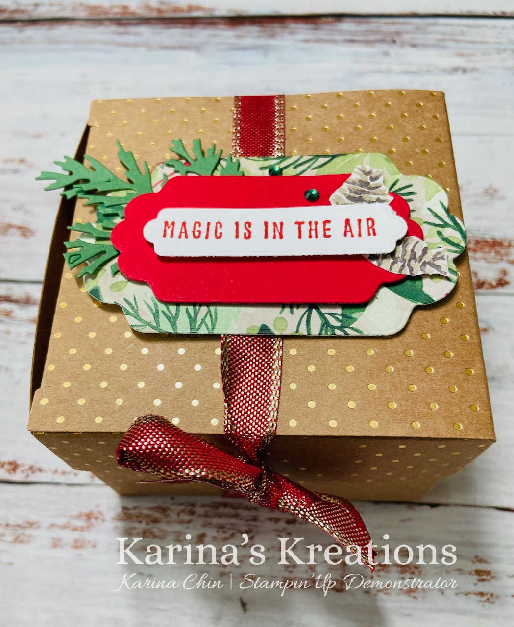 I’m sharing a really easy treat package with you. I used the Painted Christmas Product Suite to decorate my scalloped kraft treat box but you can use any Designer Series Paper or stamp set.