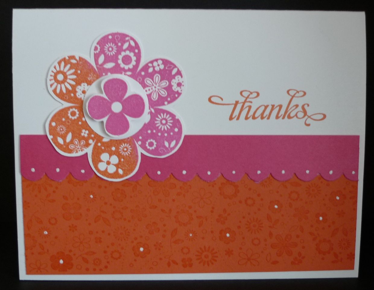Accessories: Scallop Edge Border Punch, Signo White Gel Pen, Melon Mambo & Tangerine Tango Stampin’ Emboss Powder, 1″ Circle Punch