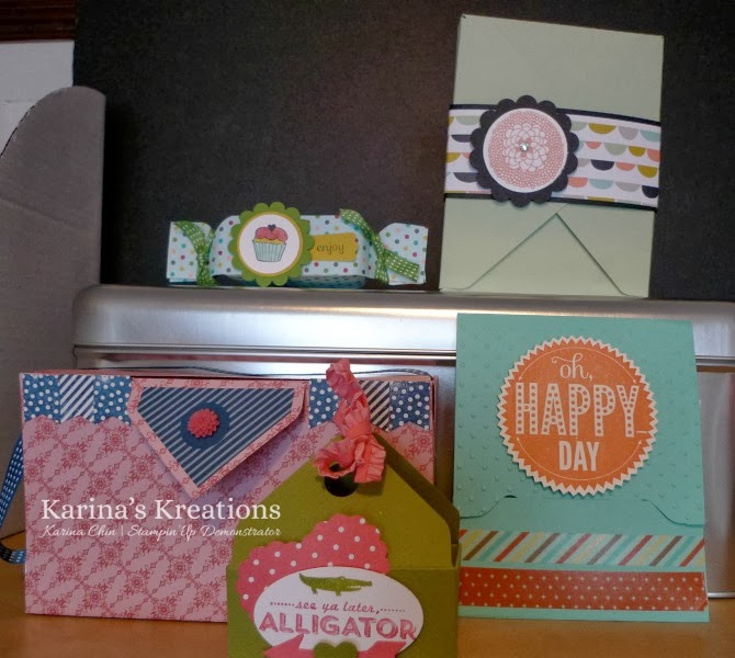 The cost is a minimum $35.00 order and we’re making 5 projects. My favourite is the clutch purse and you’ll get to choose your Designer Series Paper for your purse.