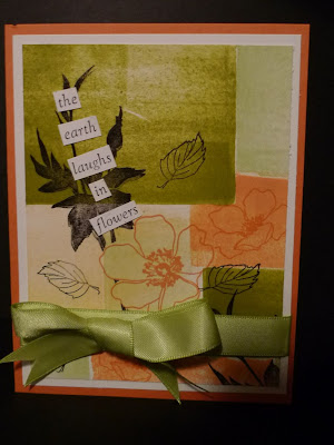 I sectioned off parts of the card with post it notes and brayered over the sections using So Saffron, Certainly Celery, Peach Parfait and Old Olive ink.