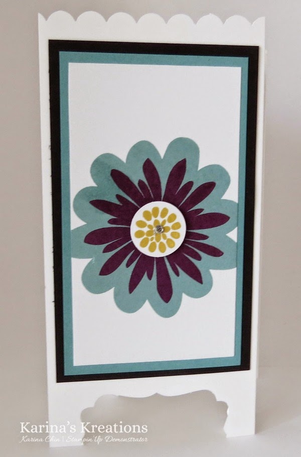 I love this card because it shows off the beautiful new In-colors and is really easy to make. If you want one of these cards come to my class next Wednesday 9:00-11:30 or sign up for my stamp set of the month.