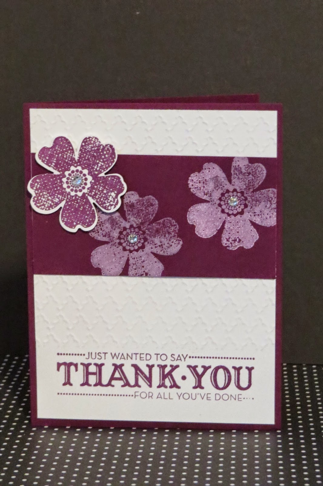 The Pansy Punch matches the Flower Shop stamp set #139042 $21.95 and makes this cute swap card that I received! The greeting is a hostess stamp set called Let Your Hair Down.