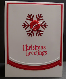 I made the matching card using the same die and the snowflake punch. I added some red glimmer paper behind the snowflake. So cute and easy too.