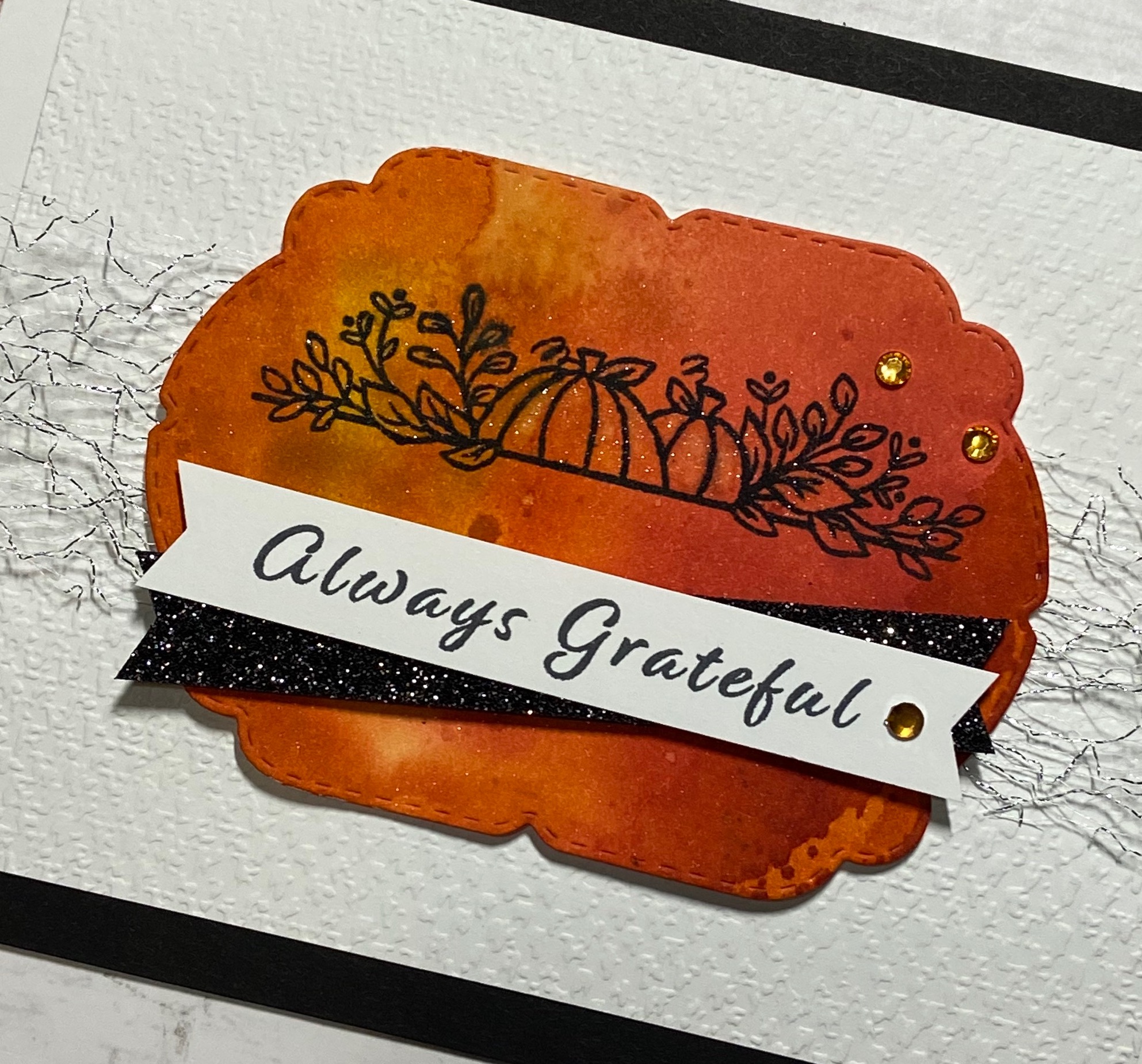 I made this card to Celebrate Thanksgiving. The fun background reminds me of all the leaves falling on the ground right now.