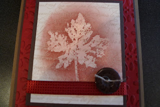 The Cherry Cobbler card stock was embossed with the Finial Press Textured Impressions Embossing Folder. I used a brayer to roll Cherry Cobbler ink over the raised areas.