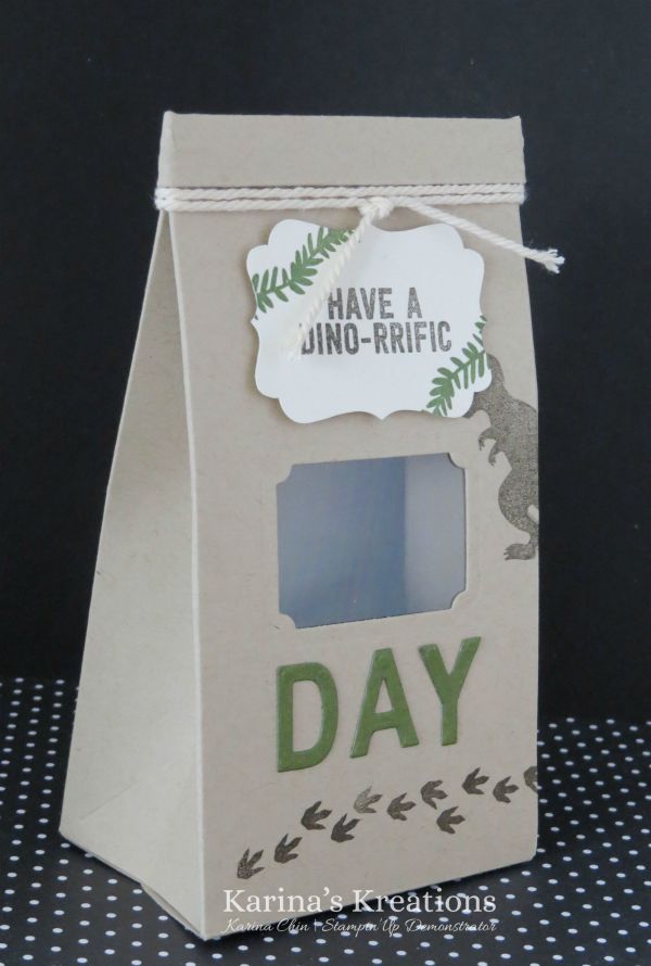 I made this cute cafe bag using the Gift bag punch board and decorated it with the new No Bones About it stamp set #138756.