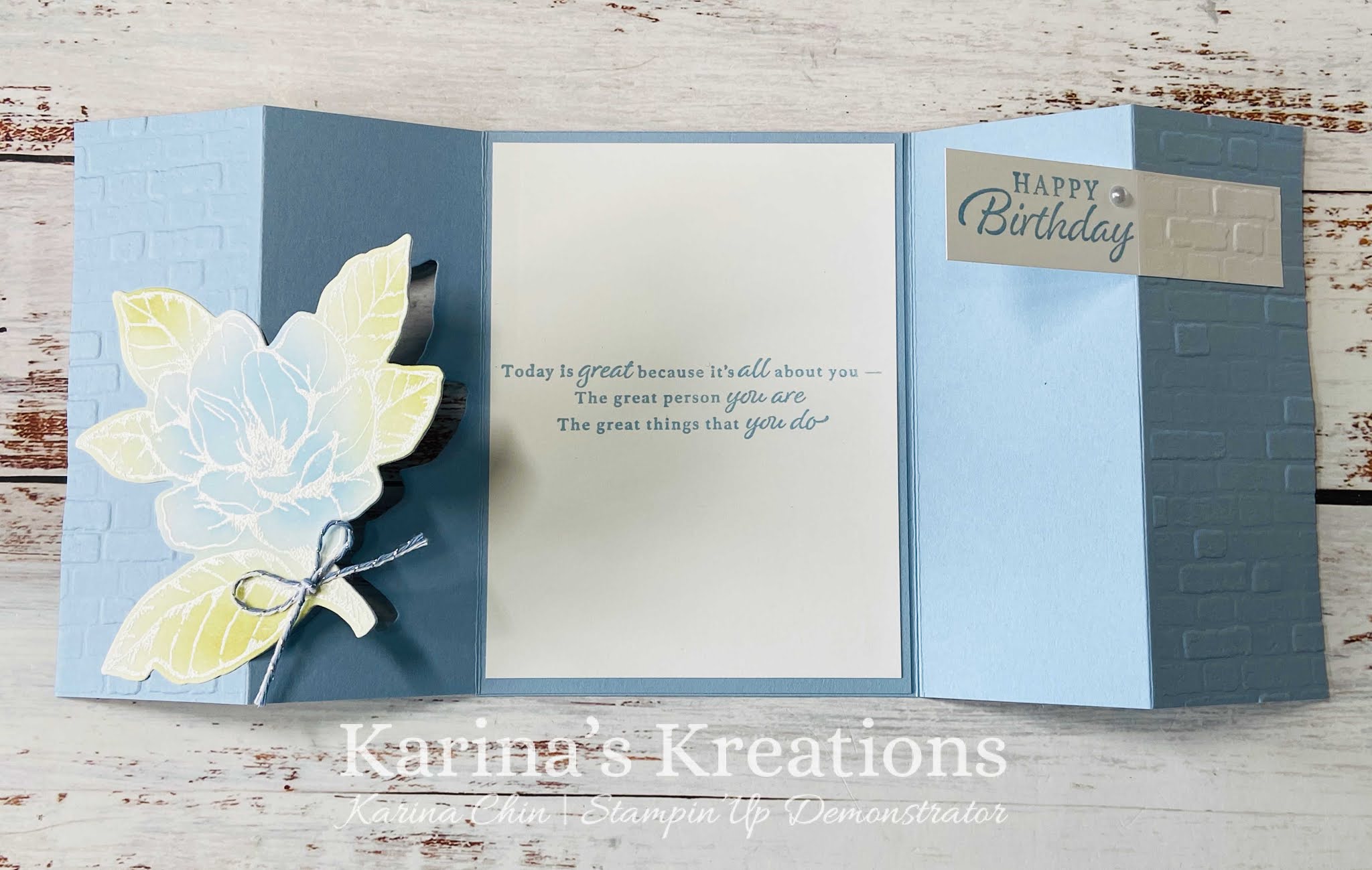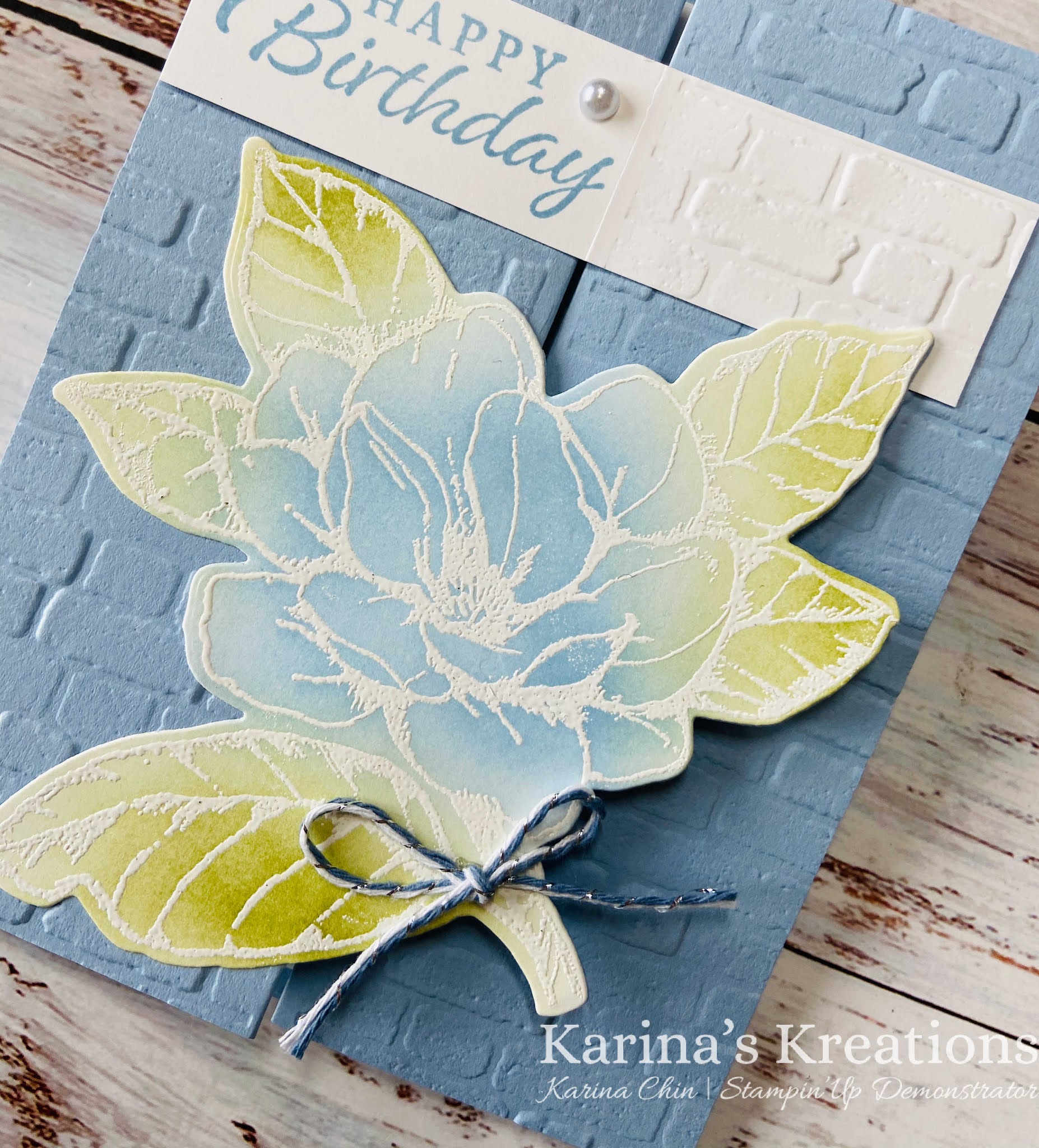 This card is simply elegant and easy to make. It sues the Good Morning Magnolia stamp set and coordinating Magnolia Memory Dies. The dies are on sale for $12.00