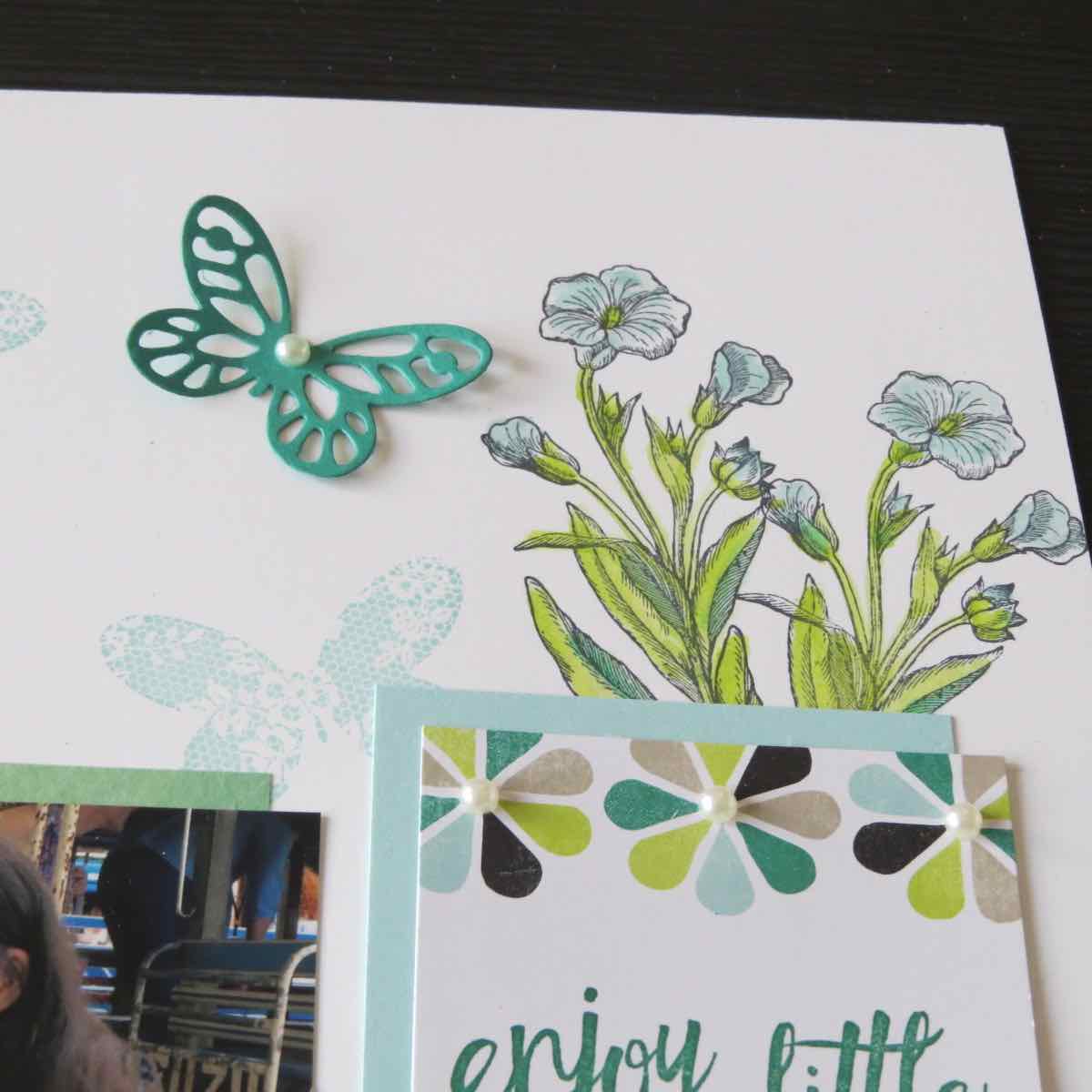 This is one of my favorite sets and I created this pretty page for Wednesday night’s scrapbook class using it.