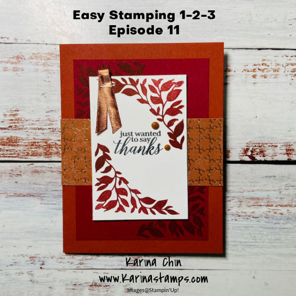 Can you see how easy this is? Anyone can create beautiful handmade cards. You can click this link to order your card making supplies. Karinas Craft Store! I used the Around the Bend stamp set. Happy Stamping!
