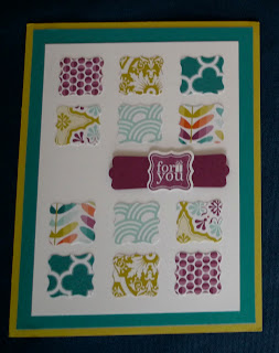 Stamp Set Patterned Occasions #129624 (C) or #129621 (W) stamped by Jen Pitta ( Jen’s a US demo and I love her card from Leadership)