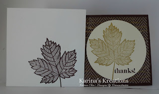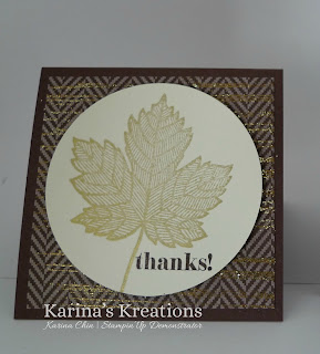 The maple leaf was stamped with the Gold Metallic Encore ink Pad and punched out with the 2-1/2″Circle Punch.