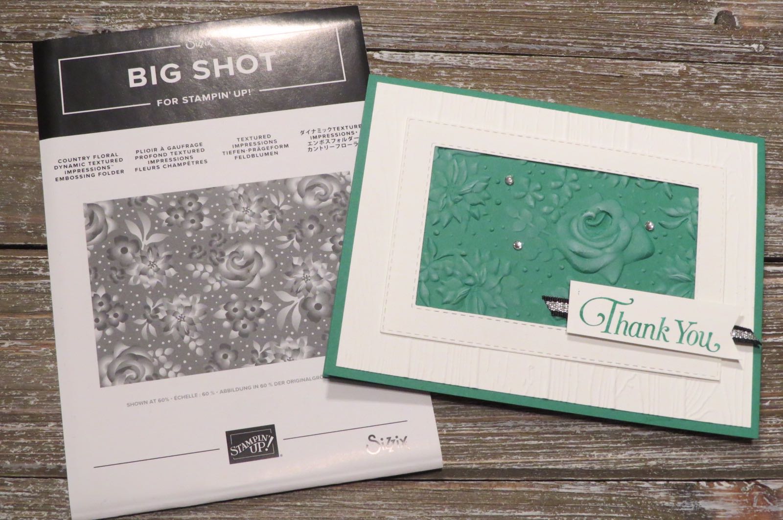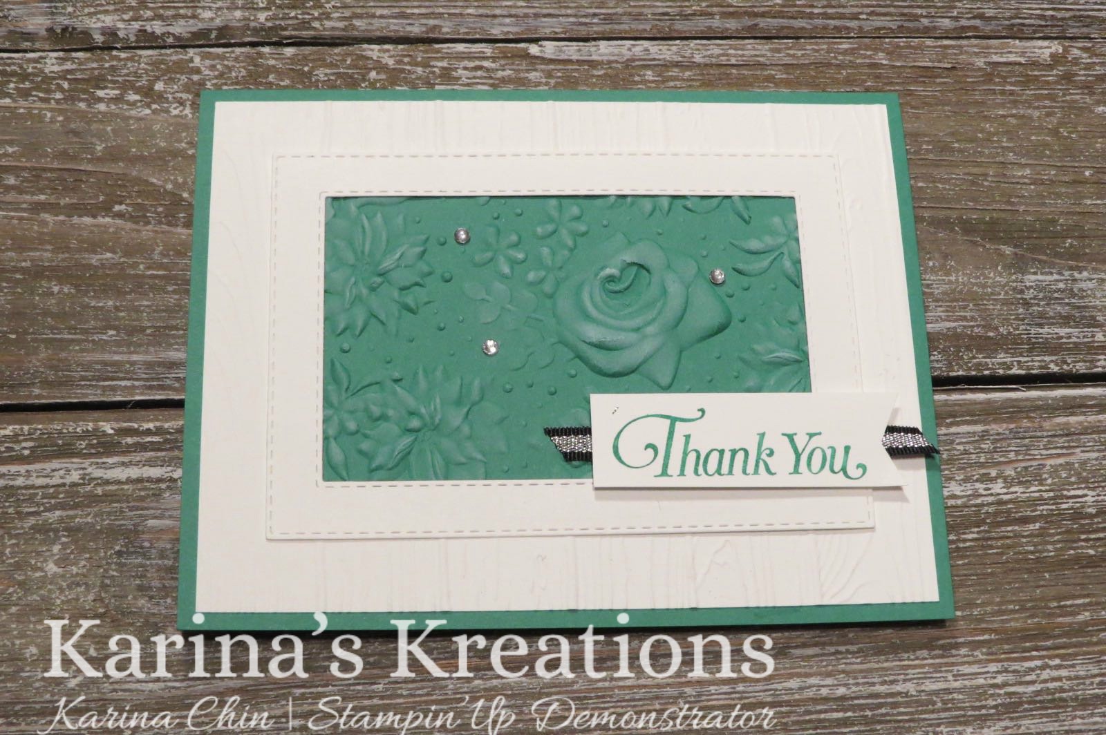 One of these items is the Country Floral Embossing Folder as seen in my card. I embossed some Call Me Clover cardstock with the folder and sponged white craft ink over the raised areas.