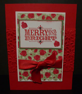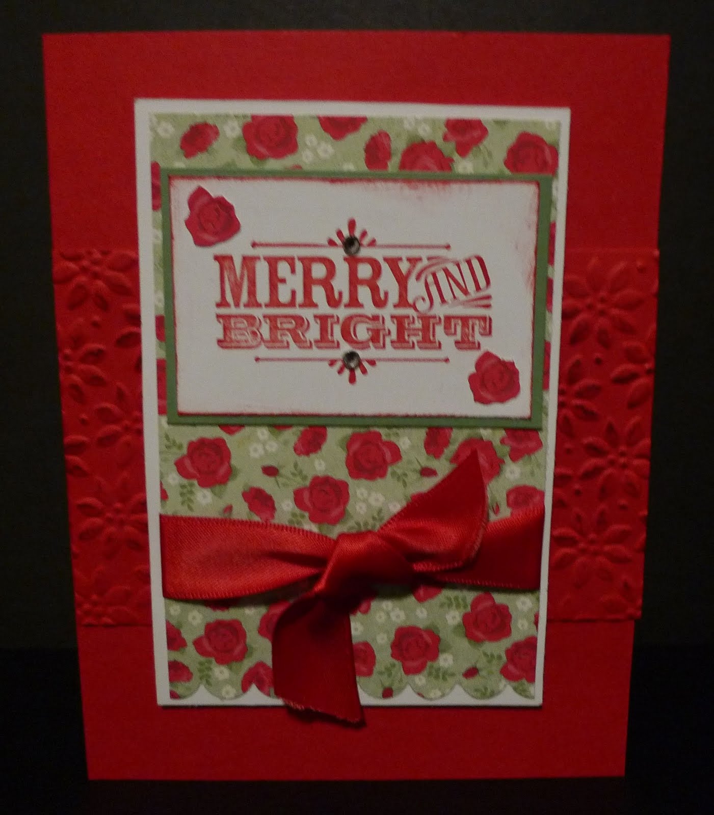 The Designer Paper is called Holly Berry Bouquet. I cut out some of the roses and added them to the greeting which was stamped with the Merry & Type Stamp set.