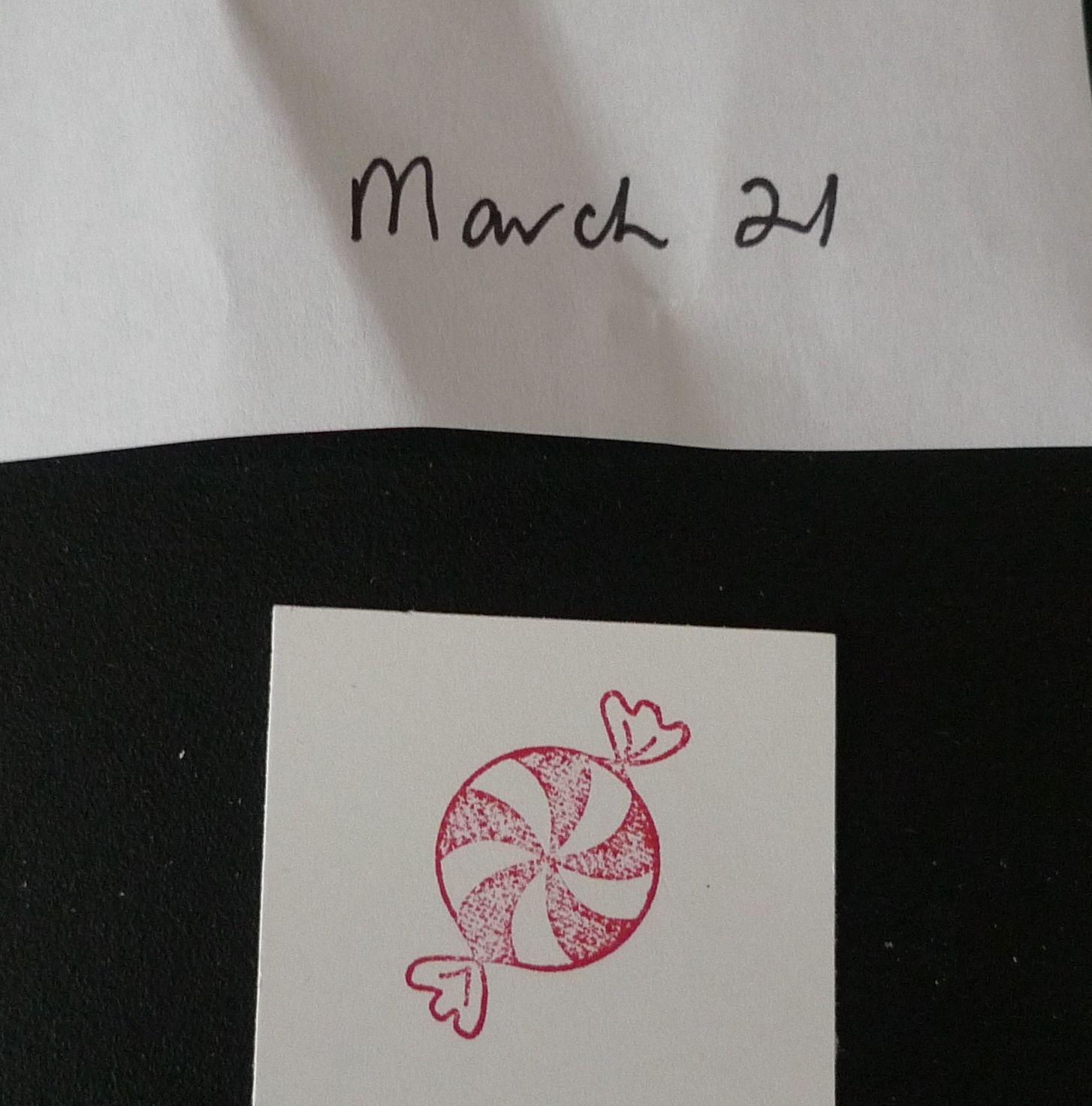 It’s the candy from stamp from Jolly Bingo Bits. Mark it off if it’s on your Bingo Card.
