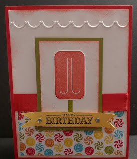 The popsicle is stamped twice. Once in Old Olive and a second time in Real Red. The Real Red popsicle was cut out and placed on top of the Old Olive image.