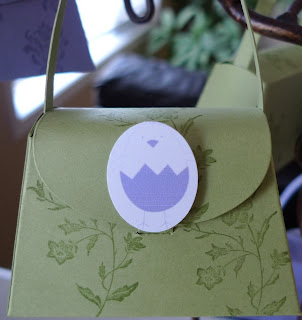 Notice the bunny on the purse? I don’t own any Easter Sets so I bought The Good Egg digital download on My Digital Studio for $4.95 and printed the chicks on Whisper White card stock and punched them out with the Small Oval Punch #120908 $13.95. The nice thing about a digital stamp is that I could reduce the size to fit in my punch and fit on the purses.