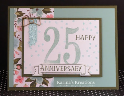 The Number of Years stamp set coordinates with the Large Number Framelits Dies. A little stamping, a big shot die, gorgeous designer paper and you have a beautiful card. Stampin’Up does all the work!